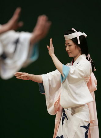 中國日報網(wǎng)環(huán)球在線消息:藝妓們在長野縣千曲市舉行的“峰會”上表演。