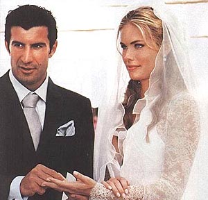 菲戈比海倫大兩歲,兩人是在1995年結識的。當時菲戈約一個朋友吃飯,沒想到朋友帶了一個美貌的瑞典模特,就是海倫。當時菲戈一下子就覺得海倫就是他未來生命中的另一半。菲戈回憶說,“當時我看著她,她也在看著我,不過我并沒有向她表達什么,很多話都被我吞下了”。隨后菲戈三次邀請海倫看音樂劇、拳擊賽和喝咖啡,雖然菲戈不會說甜言蜜語,但是追求美女的一片誠心和堅持不懈的精神讓模特海倫終于投降。經(jīng)過五年馬拉松式的戀愛,2000年5月16日兩人“奉女成婚”。去年夏天菲戈選擇國米據(jù)說也是聽從了妻子的建議。