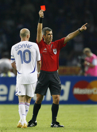 這次比賽中,齊達內(nèi)在加時賽中與意大利球員馬特拉齊發(fā)生沖突被直接罰下。此前,齊達內(nèi)曾經(jīng)表示,自己將在世界杯后正式退出國際賽場。