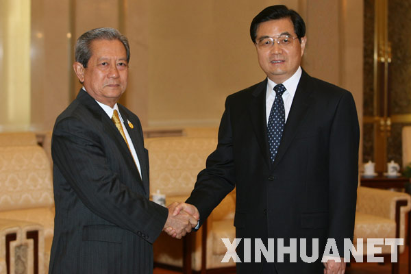 5月28日,國家主席胡錦濤在北京人民大會堂會見泰國總理素拉育