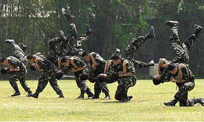 駐港部隊(duì)官兵在石崗軍營進(jìn)行拳術(shù)表演。