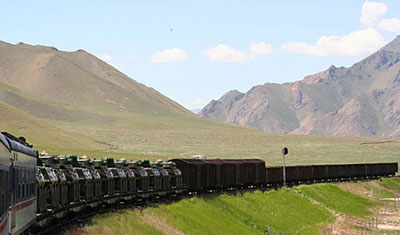 載著重型裝備和集裝箱的中方地面部隊第三梯隊軍列正在穿越美麗的天山 王國民攝于7月22日