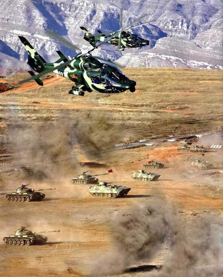 資料圖:中國陸航部隊武直九G攻擊直升機支援陸軍裝甲群