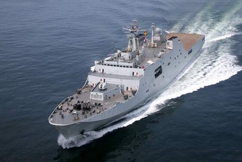 東方網圖:中國最新下水的071型船塢登陸艦海試