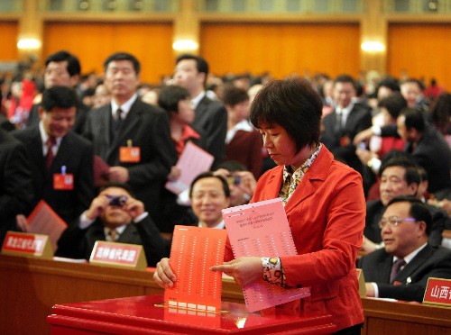 10月21日,中國(guó)共產(chǎn)黨第十七次全國(guó)代表大會(huì)閉幕會(huì)在北京人民大會(huì)堂舉行。這是代表投票選舉中央委員會(huì)委員、候補(bǔ)委員和中央紀(jì)律檢查委員會(huì)委員。新華社記者 馬占成 攝