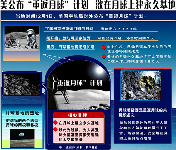 圖表:美公布“重返月球”計劃 欲在月球上建永久基地 新華社發(fā)
