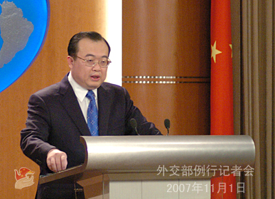 中國日報網(wǎng)環(huán)球在線消息:2007年11月1日下午,外交部發(fā)言人劉建超舉行例行記者會,就六方會談、緬甸問題、伊朗核問題等回答記者提問。