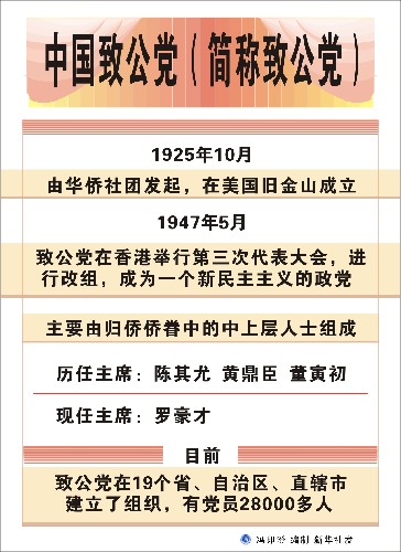 目前,致公黨在19個省、自治區(qū)、直轄市建立了組織,有黨員28000多人。