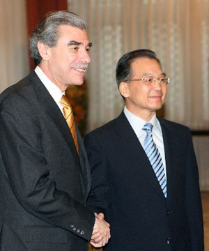 2006年11月14日,中國國務(wù)院總理溫家寶在中南海會見美國商務(wù)部部長卡洛斯·古鐵雷斯。