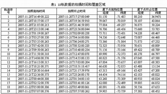 表1 19軌數(shù)據(jù)的拍攝時(shí)間和覆蓋區(qū)域