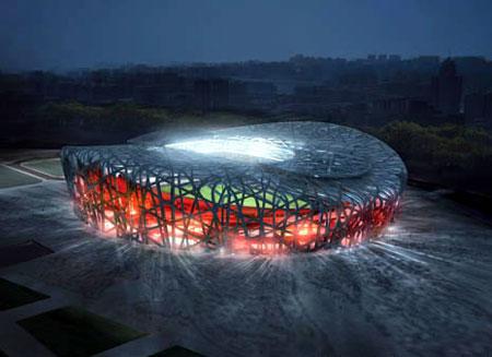設(shè)計師:赫佐格和德梅隆。參加2008年奧林匹克夏季奧運會的運動員將在這座鳥巢似的場館中競技。