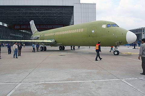 2003年12月20日,ARJ21型支線飛機(jī)同時(shí)在上海、西安、成都、沈陽四個(gè)飛機(jī)制造公司開工生產(chǎn)。其中成都飛機(jī)工業(yè)集團(tuán)負(fù)責(zé)飛機(jī)機(jī)頭和前登機(jī)門,西安飛機(jī)工業(yè)集團(tuán)負(fù)責(zé)中機(jī)身和機(jī)翼,沈陽飛機(jī)工業(yè)集團(tuán)負(fù)責(zé)后登機(jī)門、垂尾和方向舵,而上海飛機(jī)制造廠則負(fù)責(zé)平尾和飛機(jī)總裝。按照中航商用飛機(jī)有限公司提供的研制時(shí)間表,ARJ21原型機(jī)計(jì)劃于2007年3月開始在上海大場(chǎng)基地總裝,2008年3月首飛,2009年第三季度首架飛機(jī)將交付啟動(dòng)用戶---中國(guó)山東航空公司。