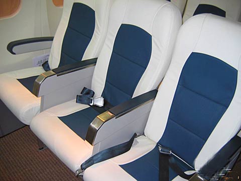 ARJ21支線飛機(jī)最終設(shè)計(jì)為采用下單翼、機(jī)身尾部吊裝2臺(tái)渦扇發(fā)動(dòng)機(jī),高平尾、前三點(diǎn)式可收放起落架布局。駕駛艙采用2人制大屏液晶顯示的“玻璃駕駛艙”布局,客艙布置為經(jīng)濟(jì)艙每排5座,頭等/公務(wù)艙每排4座。機(jī)身寬度的設(shè)計(jì)上比目前世界常見的同類型支線飛機(jī)CRJ700、ERJ-170等支線飛機(jī)要寬0.4米左右,座椅的寬度比波音737還要寬,最大程度地利用客艙內(nèi)部空間,并為旅客營(yíng)造一個(gè)寬敞舒適的旅行環(huán)境。