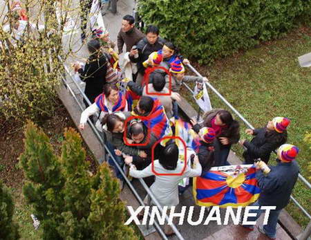 3月17日,“藏獨(dú)”分子暴力沖擊中國(guó)駐德國(guó)慕尼黑總領(lǐng)館,用瓶罐、樹(shù)棍等粗暴圍攻領(lǐng)館工作人員(紅圈標(biāo)注為領(lǐng)館工作人員)。3月10日以來(lái),中國(guó)駐美國(guó)、英國(guó)、法國(guó)、荷蘭、比利時(shí)、奧地利、印度使館,駐紐約、芝加哥、多倫多、卡爾加里、法蘭克福、慕尼黑、蘇黎世、悉尼總領(lǐng)館,駐歐盟使團(tuán)和常駐世界貿(mào)易組織代表團(tuán)共17個(gè)外交和領(lǐng)事機(jī)構(gòu)接連遭到境外“藏獨(dú)”分子的暴力沖擊。有關(guān)國(guó)家政府高度重視中國(guó)外交和領(lǐng)事機(jī)構(gòu)遭暴力沖擊事件,已采取相應(yīng)措施,加強(qiáng)對(duì)中國(guó)外交和領(lǐng)事機(jī)構(gòu)的安全保護(hù),并表示將依法處理肇事者,妥善處理相關(guān)事宜。