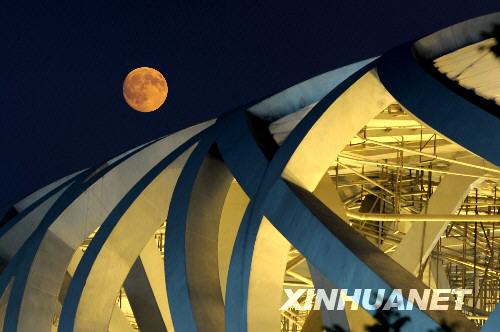 9月14日,恰逢中國農(nóng)歷八月十五中秋節(jié),一輪明月從“鳥巢”后升起。當(dāng)日,北京殘奧會田徑項(xiàng)目比賽在國家體育場“鳥巢”繼續(xù)進(jìn)行。 新華社記者劉力航攝