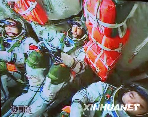 9月25日晚,記者在北京航天飛行控制中心拍攝的飛船返回艙畫面。目前,北京航天飛行控制中心已準(zhǔn)備就緒。新華社記者龐興雷攝