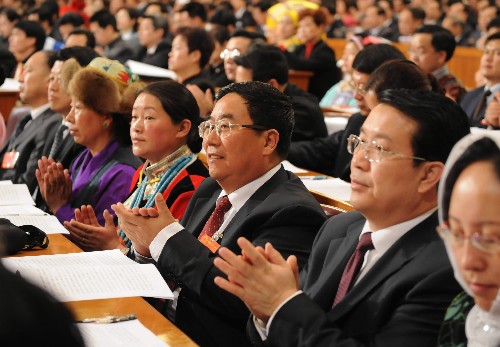 3月5日,第十一屆全國人民代表大會第一次會議在北京人民大會堂開幕。這是代表在熱烈鼓掌。 新華社記者李學(xué)仁攝