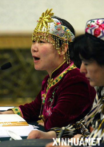 這是來自新疆的全國人大代表哈麗妲·努爾買買提(烏孜別克族)。 新華社記者樊如鈞攝
