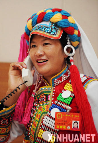 這是來自云南的全國人大代表丁秀花(怒族)。 新華社記者楊宗友攝