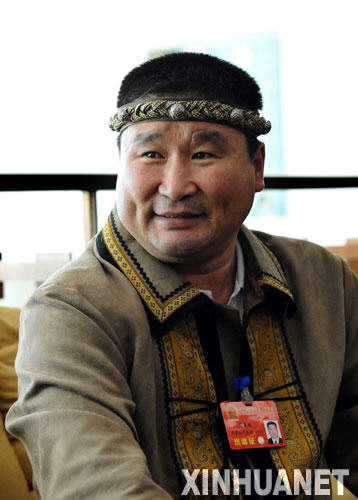 這是來自內(nèi)蒙古的全國人大代表色音圖(鄂溫克族)。 新華社記者李濤攝