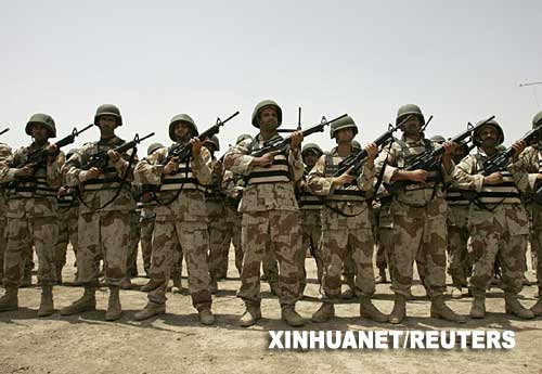 5月13日,伊拉克士兵在首都巴格達(dá)的塔季美軍基地列隊(duì)手持美國軍隊(duì)發(fā)的新步槍。當(dāng)天,美國軍隊(duì)向伊拉克軍隊(duì)分發(fā)了800支M-16和M-4步槍。這是美國對外軍售計(jì)劃的一部分。新華社/路透