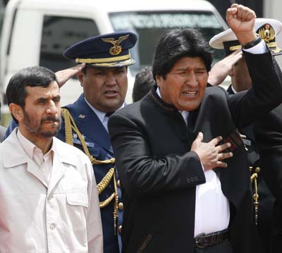 內(nèi)賈德在訪問玻利維亞時承諾在未來5年內(nèi)投資10億美元幫助玻利維亞開發(fā)其天然氣資源、開采礦產(chǎn)、發(fā)電以及為農(nóng)業(yè)和工程項(xiàng)目提供資金。玻利維亞總統(tǒng)莫拉萊斯稱內(nèi)賈德的來訪是“歷史性的”。
