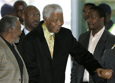 南非前總統(tǒng)納爾遜·曼德拉27日出席索韋托馬蓬亞購(gòu)物中心的開業(yè)儀式(美國(guó)媒體)