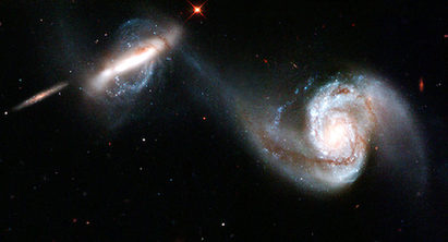 這張“星系之舞”是哈勃望遠(yuǎn)鏡拍下的一系列壯觀太空照片中最新的一張。自從1990年一架航天飛機搭載它升空后,這架繞地球軌道運行的望遠(yuǎn)鏡已經(jīng)發(fā)回了很多照片,其中包括我們的太陽系、遙遠(yuǎn)的恒星和星系、廣闊的恒星誕生地等,有些天體的光都要花上100億年的時間才能抵達(dá)地球,這些都是我們在地球上觀測不到的。