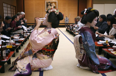 和許多傳統(tǒng)文化一樣,隨著時代的發(fā)展,藝伎業(yè)也面臨著困境。對此,古金頗為傷感,她說:“以前的客人們喜歡和我們暢談,現(xiàn)在的客人更愿意去卡拉ok和酒吧,而不是去欣賞我們的演出?!?/p>