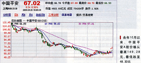 中國日報(bào)網(wǎng)站環(huán)球在線消息:中國平安保險(xiǎn)(集團(tuán))股份有限公司(以下簡稱中國平安)不久前公布的年報(bào)顯示:公司董事長馬明哲去年的年薪為稅前6616萬元,平均每天薪酬18.12萬元,創(chuàng)下了國內(nèi)高管年薪的最高紀(jì)錄。而中國平安的股價(jià)則由頂峰時(shí)的149.28元一路下滑,最低曾跌至48.30元。一時(shí)間,損失慘重的股民們對如此強(qiáng)烈的反差議論紛紛。