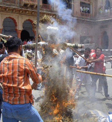 上周,示威者與警察發(fā)生沖突,警察向示威者開(kāi)了火。短短幾天內(nèi),已經(jīng)有36名示威者喪生。在印度拉賈斯坦邦的兩個(gè)瞿折羅人占多數(shù)的城鎮(zhèn),示威者用被警察打死的尸體封鎖道路,聲稱(chēng)政府不讓步,絕不火化。印度軍隊(duì)和警察包圍了這兩個(gè)城鎮(zhèn)。