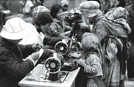 王文瀾先生拍攝的這張黑白照片里記錄的就是這個情形。兩三名婦女加上幾臺縫紉機,幾乎就可以形成一個小市場。這張照片于1985年拍攝于中國西南部省份云南。那里離北京和上海還很遠(yuǎn),那時的中國也遠(yuǎn)沒有成為世界上主要的紡織品和成衣生產(chǎn)國,但改變的跡象已在那里初露端倪。這是毋庸置疑的。你可以看到市場經(jīng)濟和私有企業(yè)的影子。