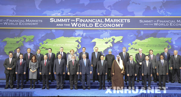 11月15日,中國(guó)國(guó)家主席胡錦濤在華盛頓出席二十國(guó)集團(tuán)領(lǐng)導(dǎo)人金融市場(chǎng)和世界經(jīng)濟(jì)峰會(huì)。這是與會(huì)各國(guó)領(lǐng)導(dǎo)人合影。新華社記者李學(xué)仁 攝