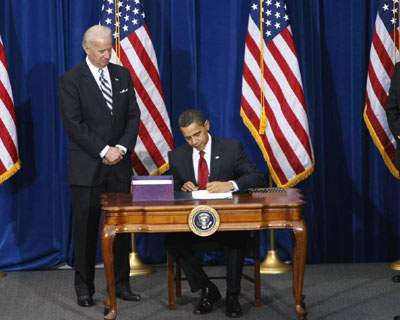 奧巴馬17日簽署總額7870億美元的經(jīng)濟(jì)刺激計(jì)劃。