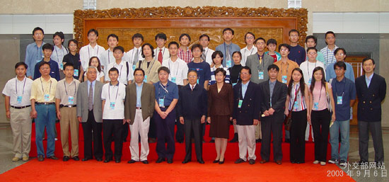 最后,公眾來到預示和平的橄欖廳。戴秉國副部長、沈國放部長助理在門口迎接公眾,與公眾進行交談、合影,將“走進外交部” 活動推向高潮。戴秉國副部長代表李肇星部長和外交部歡迎大家的到來,對公眾對外交的關(guān)心和支持表示感謝,并扼要介紹了中國總體外交政策和外交工作。
