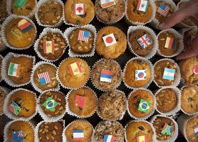 G20財(cái)長(zhǎng)會(huì)議向媒體提供裝點(diǎn)了20國(guó)國(guó)旗的蛋糕