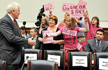 AIG首席執(zhí)行官利迪上周在出席聽證會時遭到抗議