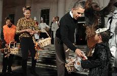 中國日報網(wǎng)環(huán)球在線消息:10月31日萬圣節(jié)前夜,美國總統(tǒng)奧巴馬與妻子米歇爾在白宮與軍人的孩子以及白宮工作人員家庭等共度節(jié)日。