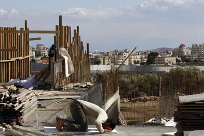 11月17日,一名巴勒斯坦人在猶太人定居點附近祈禱。