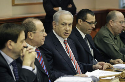 11月15日,以色列總理內(nèi)塔尼亞胡(中)出席內(nèi)閣會議。