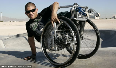“我感到非常高興,我終于做到了,”被朋友們稱作“車輪”的亞倫說(shuō)。2006年,14歲的亞倫成為世界上唯一能在輪椅上做后空翻的人。2008年11月,他憑借著這一高難度動(dòng)作被載入吉尼斯世界紀(jì)錄。在那之后,亞倫又給自己定下了新的目標(biāo)——要在輪椅上完成連續(xù)兩周后空翻。