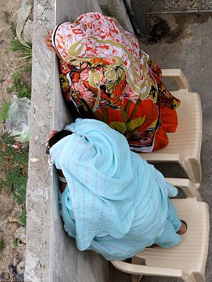 兩名巴基斯坦婦女踩著椅子向拉登住所內(nèi)張望。