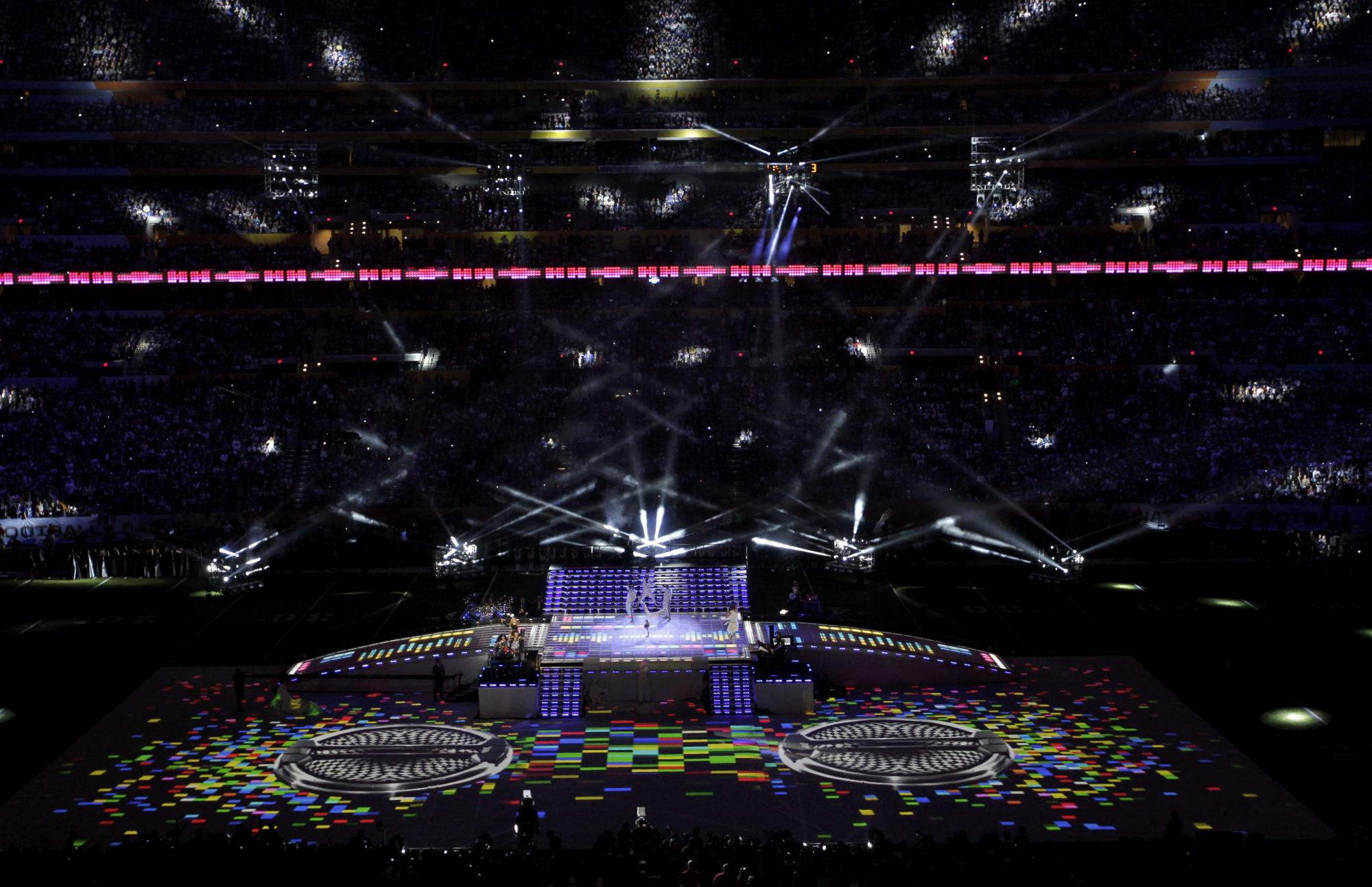 “超級碗”是美國收視率最高的電視節(jié)目,圖為中場休息時的文藝表演