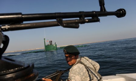 一名伊朗士兵正在參加在霍爾木茲海峽舉行的軍事演習(xí)(資料圖)