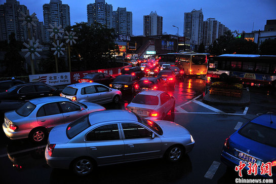 9月25日晚,即將進(jìn)入“史上最長(zhǎng)黃金周”的北京在9月的最后一周迎來(lái)了全年的“最堵周”。當(dāng)日中午前后,北京大部出現(xiàn)降雨,局地雨量較大,能見度較低,加上節(jié)前交通流量增大,傍晚全市路網(wǎng)交通指數(shù)已經(jīng)達(dá)到8.7,處于嚴(yán)重?fù)矶聽顟B(tài)。根據(jù)北京市交通委的預(yù)測(cè),受中秋、國(guó)慶雙節(jié)來(lái)臨以及高速路免費(fèi)通行的影響,北京本周將進(jìn)入“全年最堵周”。從25日傍晚提前開始的“擁堵周”,交通晚高峰提前達(dá)到中度擁堵級(jí)別,峰值已進(jìn)入嚴(yán)重?fù)矶录?jí)別。中新網(wǎng)記者金碩 攝