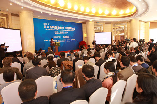 由經(jīng)濟日報社主辦、中國經(jīng)濟網(wǎng)承辦的“首屆金磚國家經(jīng)濟形勢研討會”主題為“金磚2013:挑戰(zhàn)與機遇”,同時設(shè)“金磚國家經(jīng)貿(mào)合作恰逢其時”、“金磚國家的機遇與挑戰(zhàn)”等分議題。主辦方表示,研討會旨在促進金磚國家之間的經(jīng)貿(mào)交流與合作,為金磚國家之間增進了解、加強合作、互惠共贏搭建重要對話平臺。