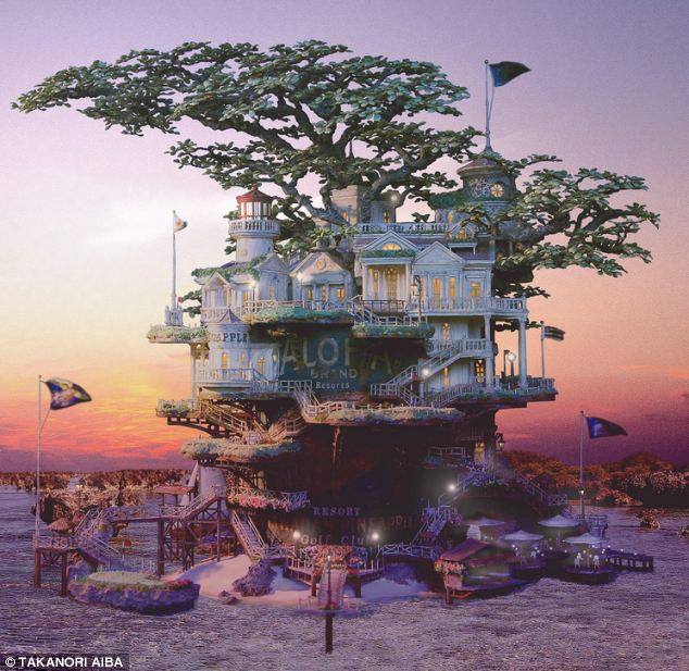 日本藝術(shù)家相馬孝則(音譯)在植物盆栽上搭建起一個又一個“微型社區(qū)”,風(fēng)車、燈塔一應(yīng)俱全,甚至還有位“米其林輪胎先生”。