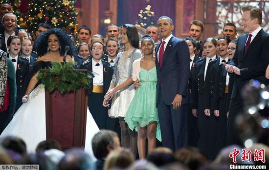 資料圖:當?shù)貢r間2012年12月9日,美國華盛頓,美國總統(tǒng)奧巴馬一家出席“圣誕節(jié)在華盛頓”音樂會。