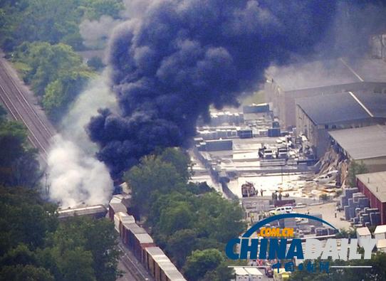 據(jù)美國(guó)媒體報(bào)道,5月28日,美國(guó)馬里蘭州一輛載有化學(xué)品的火車和一輛卡車相撞,15節(jié)車廂在該州懷特馬什脫軌。脫軌的火車起火并冒出濃重的黑煙。