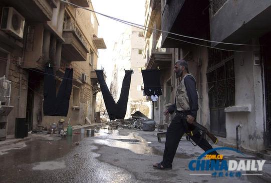 2013年6月12日,一名敘利亞自由軍士兵走在街上
